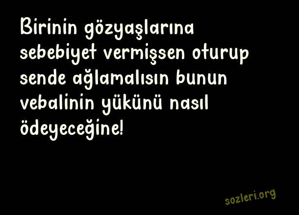 Birinin gözyaşlarına sebebiyet vermişsen oturup sende ağlamalısın bunun vebalinin yükünü nasıl ödeyeceğine! ( Sevgiliye Sevilene En Güzel Kısa Uzun Aşk )