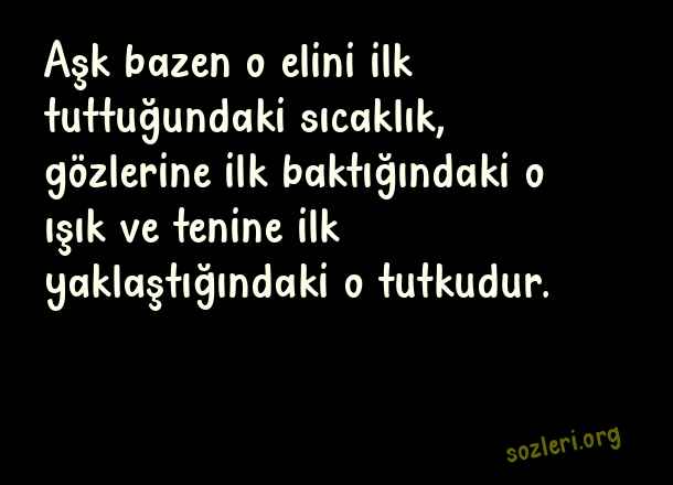 Aşk bazen o elini ilk tuttuğundaki sıcaklık, gözlerine ilk baktığındaki o ışık ve tenine ilk yaklaştığındaki o tutkudur. ( Sevgiliye Söylenecek En Güzel Aşk )