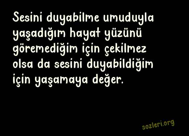 Sesini duyabilme umuduyla yaşadığım hayat yüzünü göremediğim için çekilmez olsa da sesini duyabildiğim için yaşamaya değer. ( Sevgiliye Söylenecek En Güzel Aşk )