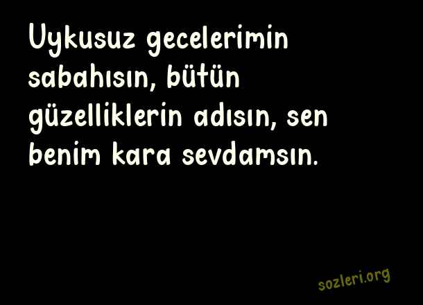 Uykusuz gecelerimin sabahısın, bütün güzelliklerin adısın, sen benim kara sevdamsın. ( Sevgiliye Söylenecek En Güzel Aşk )