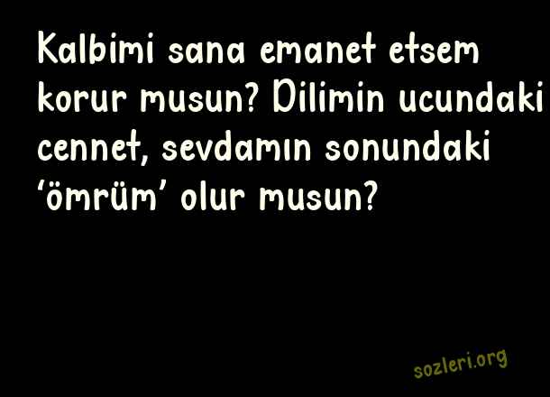 Kalbimi sana emanet etsem korur musun? Dilimin ucundaki cennet, sevdamın sonundaki ‘ömrüm’ olur musun? ( Sevgiliye Uzun Sözler )