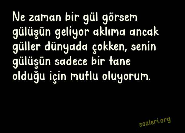 Ne zaman bir gül görsem gülüşün geliyor aklıma ancak güller dünyada çokken, senin gülüşün sadece bir tane olduğu için mutlu oluyorum. ( Sevgiliye Yazılacak Aşk )