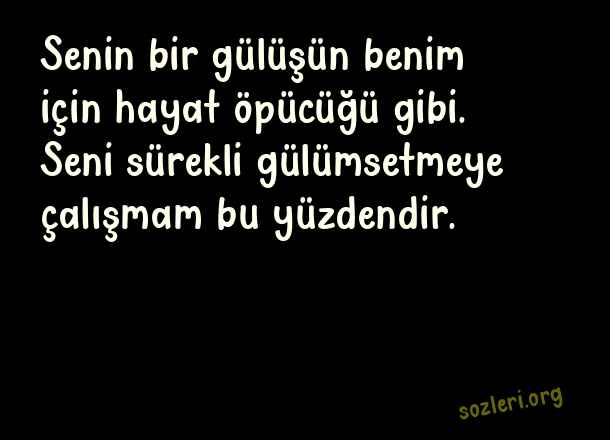 Senin bir gülüşün benim için hayat öpücüğü gibi. Seni sürekli gülümsetmeye çalışmam bu yüzdendir. ( Sevgiliye Yazılacak Aşk )