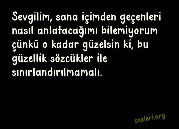 Sevgilim, sana içimden geçenleri nasıl anlatacağımı bilemiyorum çünkü o kadar güzelsin ki, bu güzellik sözcükler ile sınırlandırılmamalı. ( Sevgiliye Yazılacak Aşk )