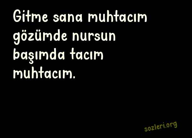 Gitme sana muhtacım gözümde nursun başımda tacım muhtacım. ( Sevgiliye Yeni Anlamlı Güzel Aşk )