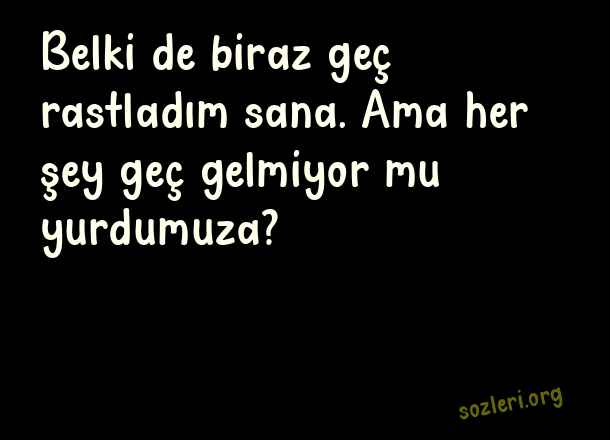 Belki de biraz geç rastladım sana. Ama her şey geç gelmiyor mu yurdumuza? ( Şiirsel Sözler )