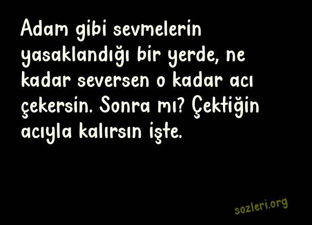 Adam gibi sevmelerin yasaklandığı bir yerde, ne kadar seversen o kadar acı çekersin. Sonra mı? Çektiğin acıyla kalırsın işte. ( Sıradışı Aşk )