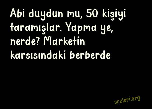 Abi duydun mu, - Soğuk Espriler .. Abi duydun mu, 50 kişiyi taramışlar. Yapma ye, nerde? Marketin karsısındaki berberde… ( Soğuk Espriler )