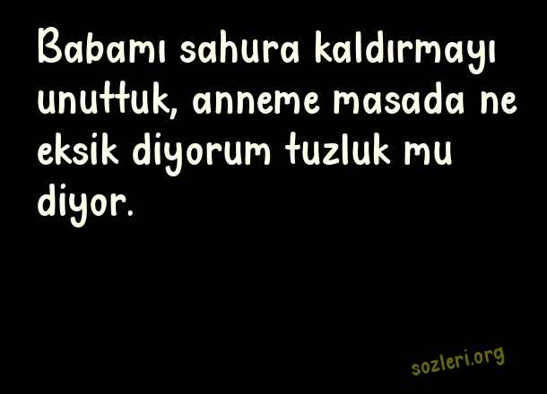 Babamı sahura kaldırmayı unuttuk, anneme masada ne eksik diyorum tuzluk mu diyor. ( Soğuk Espriler )