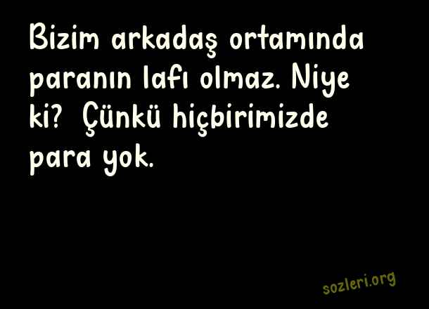 Bizim arkadaş ortamında paranın lafı olmaz. Niye ki? Çünkü hiçbirimizde para yok. ( Soğuk Espriler )