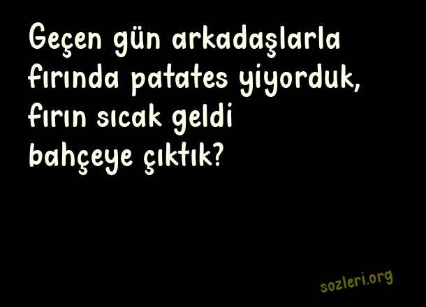 Geçen gün arkadaşlarla fırında patates yiyorduk, fırın sıcak geldi bahçeye çıktık? ( Soğuk Espriler )