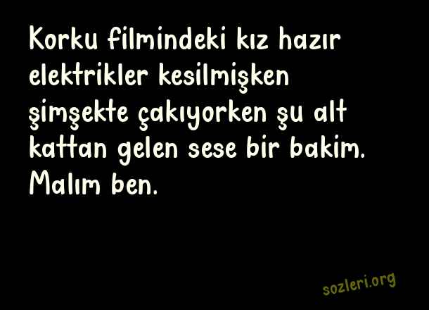 Korku filmindeki kız hazır elektrikler kesilmişken şimşekte çakıyorken şu alt kattan gelen sese bir bakim. Malım ben. ( Soğuk Espriler )