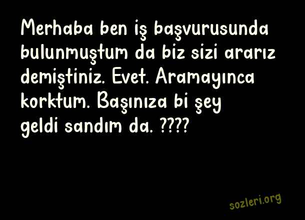 Merhaba ben iş başvurusunda bulunmuştum da biz sizi ararız demiştiniz. Evet. Aramayınca korktum. Başınıza bi şey geldi sandım da. ???? ( Soğuk Espriler )