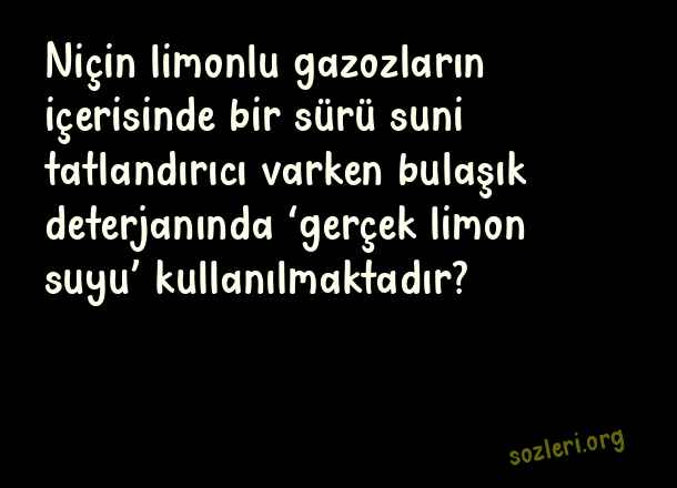 Niçin limonlu gazozların içerisinde bir sürü suni tatlandırıcı varken bulaşık deterjanında ‘gerçek limon suyu’ kullanılmaktadır? ( Buz Kestiren Soğuk Espriler )