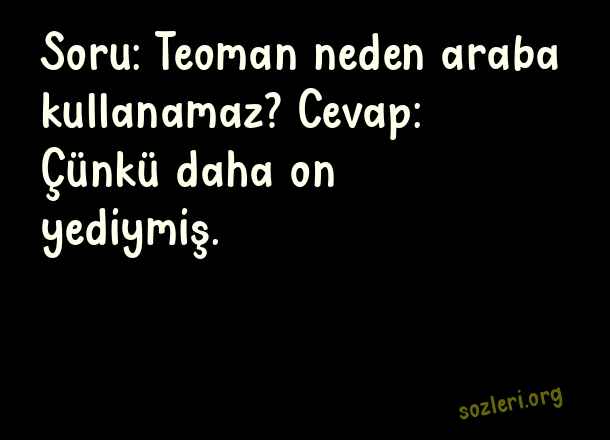 Soru: Teoman neden araba kullanamaz? Cevap: Çünkü daha on yediymiş. ( Soğuk Espriler )