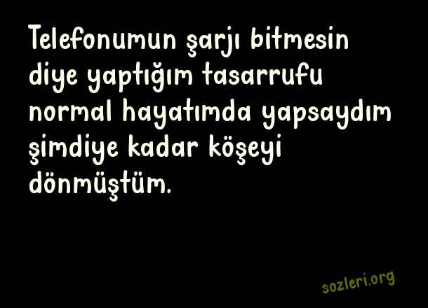 Telefonumun şarjı bitmesin diye yaptığım tasarrufu normal hayatımda yapsaydım şimdiye kadar köşeyi dönmüştüm. ( Soğuk Espriler )
