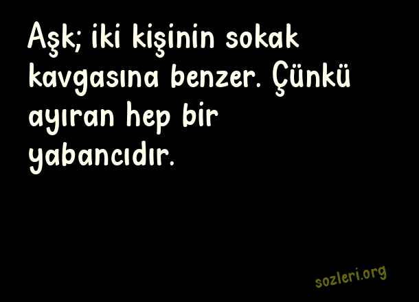 Aşk; iki kişinin - Sokak Sözleri .. Aşk; iki kişinin sokak kavgasına benzer. Çünkü ayıran hep bir yabancıdır. ( Sokak )