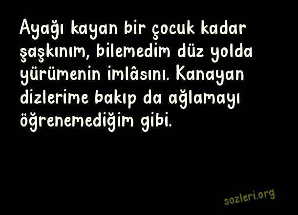 Ayağı kayan bir çocuk kadar şaşkınım, bilemedim düz yolda yürümenin imlâsını. Kanayan dizlerime bakıp da ağlamayı öğrenemediğim gibi. ( Sokak Çocukları )