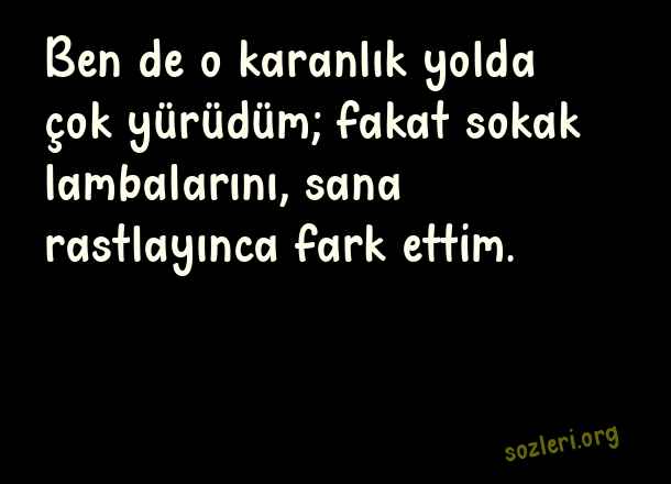 Ben de o karanlık yolda çok yürüdüm; fakat sokak lambalarını, sana rastlayınca fark ettim. ( Sokak Lambası )