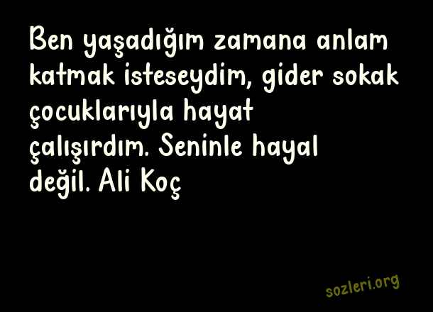 Ben yaşadığım zamana anlam katmak isteseydim, gider sokak çocuklarıyla hayat çalışırdım. Seninle hayal değil. Ali Koç ( Sokak Çocukları )