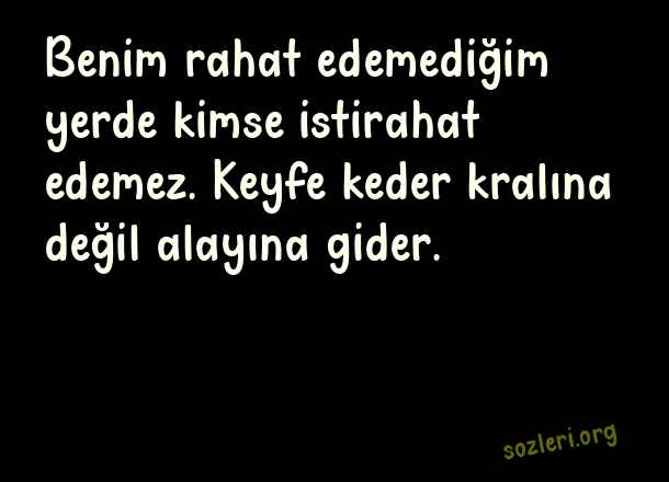 Benim rahat edemediğim yerde kimse istirahat edemez. Keyfe keder kralına değil alayına gider. ( Sokak )