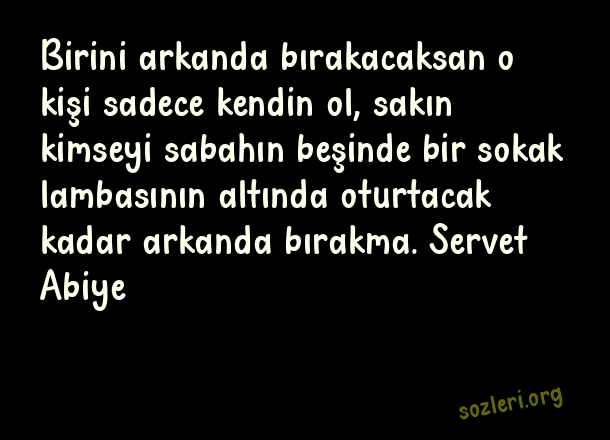 Birini arkanda bırakacaksan o kişi sadece kendin ol, sakın kimseyi sabahın beşinde bir sokak lambasının altında oturtacak kadar arkanda bırakma. Servet Abiye ( Sokak Lambası )