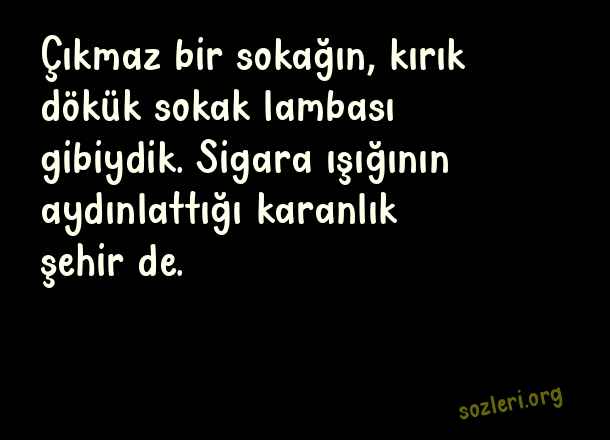 Çıkmaz bir sokağın, kırık dökük sokak lambası gibiydik. Sigara ışığının aydınlattığı karanlık şehir de. ( Sokak Lambası )