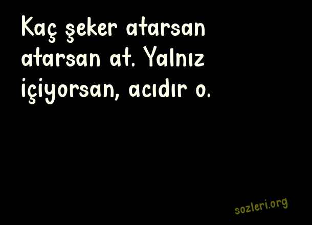 Kaç şeker atarsan - Şiir Sokakta Sözleri .. Kaç şeker atarsan atarsan at. Yalnız içiyorsan, acıdır o. ( Şiir Sokakta )