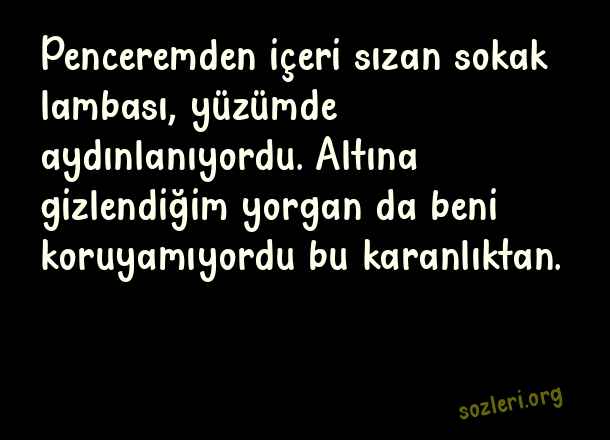 Penceremden içeri sızan sokak lambası, yüzümde aydınlanıyordu. Altına gizlendiğim yorgan da beni koruyamıyordu bu karanlıktan. ( Sokak Lambası )