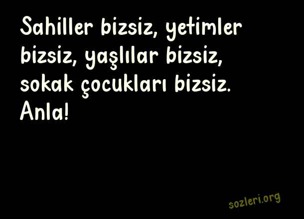 Sahiller bizsiz, yetimler bizsiz, yaşlılar bizsiz, sokak çocukları bizsiz. Anla! ( Sokak Çocukları )