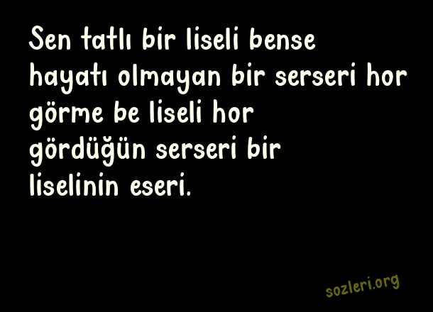 Sen tatlı bir liseli bense hayatı olmayan bir serseri hor görme be liseli hor gördüğün serseri bir liselinin eseri. ( Sokak )