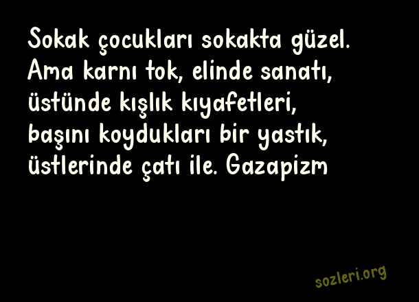 Sokak çocukları sokakta güzel. Ama karnı tok, elinde sanatı, üstünde kışlık kıyafetleri, başını koydukları bir yastık, üstlerinde çatı ile. Gazapizm ( Sokak Çocukları )