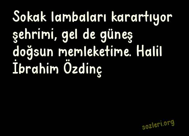 Sokak lambaları karartıyor şehrimi, gel de güneş doğsun memleketime. Halil İbrahim Özdinç ( Sokak Lambası )
