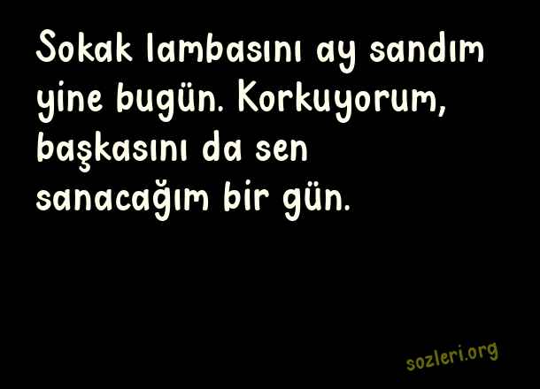 Sokak lambasını ay sandım yine bugün. Korkuyorum, başkasını da sen sanacağım bir gün. ( Sokak Lambası )