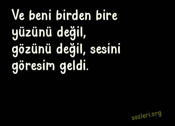 Ve beni birden bire yüzünü değil, gözünü değil, sesini göresim geldi. ( Şiir Sokakta )