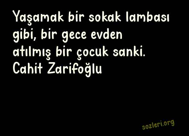 Yaşamak bir sokak lambası gibi, bir gece evden atılmış bir çocuk sanki. Cahit Zarifoğlu ( Sokak Lambası )