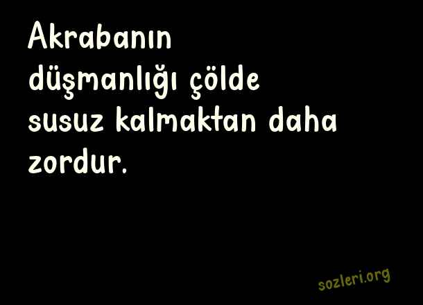 Akrabanın düşmanlığı çölde susuz kalmaktan daha zordur. ( Akrabaya Laf Sokucu Sözler )