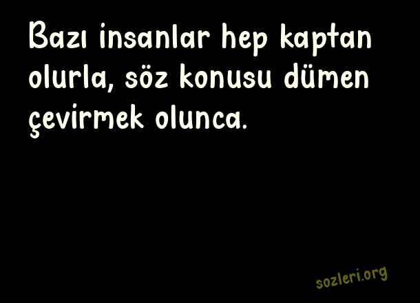 Bazı insanlar hep kaptan olurla, söz konusu dümen çevirmek olunca. ( Sokucu Sözler )