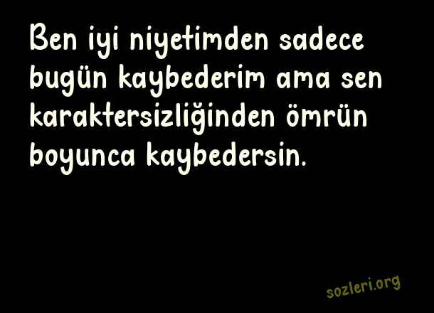 Ben iyi niyetimden sadece bugün kaybederim ama sen karaktersizliğinden ömrün boyunca kaybedersin. ( Akrabaya Laf Sokucu Sözler )