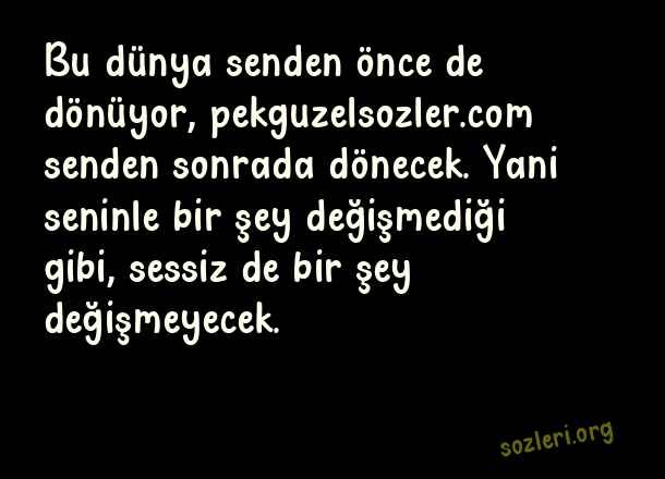 Bu dünya senden önce de dönüyor, senden sonrada dönecek. Yani seninle bir şey değişmediği gibi, sessiz de bir şey değişmeyecek. ( Sokucu Sözler )