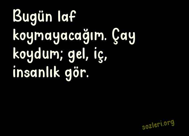 Bugün laf koymayacağım. Çay koydum; gel, iç, insanlık gör. ( Arkadaşa Laf Sokucu Sözler )