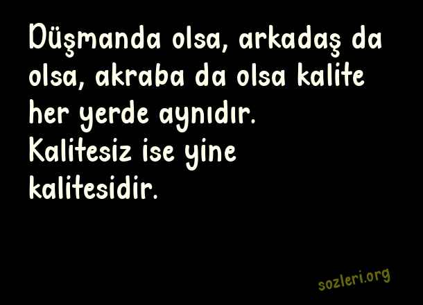 Düşmanda olsa, arkadaş da olsa, akraba da olsa kalite her yerde aynıdır. Kalitesiz ise yine kalitesidir. ( Akrabaya Laf Sokucu Sözler )