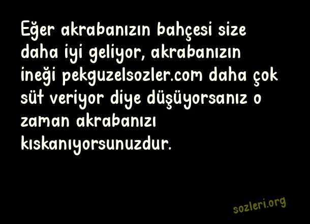 Eğer akrabanızın bahçesi size daha iyi geliyor, akrabanızın ineği daha çok süt veriyor diye düşüyorsanız o zaman akrabanızı kıskanıyorsunuzdur. ( Akrabaya Laf Sokucu Sözler )