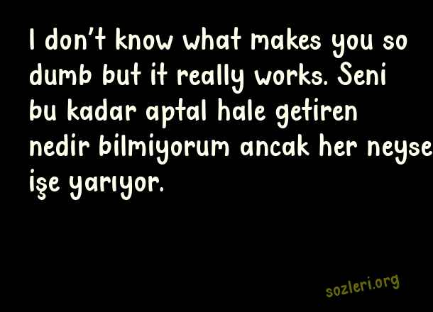 l don’t know what makes you so dumb but it really works. Seni bu kadar aptal hale getiren nedir bilmiyorum ancak her neyse işe yarıyor. ( İngilizce Laf Sokucu Sözler )