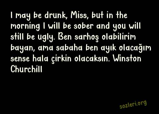l may be drunk, Miss, but in the morning l will be sober and you will still be ugly. Ben sarhoş olabilirim bayan, ama sabaha ben ayık olacağım sense hala çirkin olacaksın. Winston Churchill ( İngilizce Laf Sokucu Sözler )