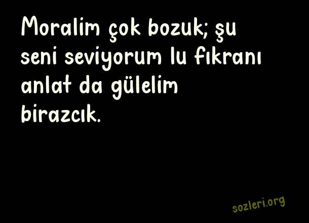 Moralim çok bozuk; şu seni seviyorum lu fıkranı anlat da gülelim birazcık. ( Laf Sokucu Sözler )