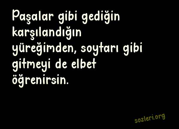 Paşalar gibi gediğin karşılandığın yüreğimden, soytarı gibi gitmeyi de elbet öğrenirsin. ( Sokucu Sözler )
