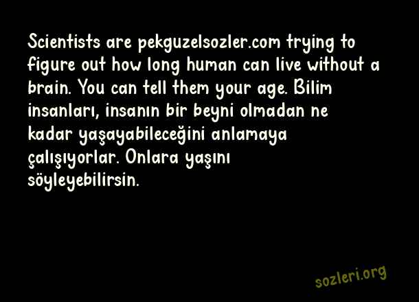 Scientists are trying to figure out how long human can live without a brain. You can tell them your age. Bilim insanları, insanın bir beyni olmadan ne kadar yaşayabileceğini anlamaya çalışıyorlar. Onlara yaşını söyleyebilirsin. ( İngilizce Laf Sokucu Sözler )