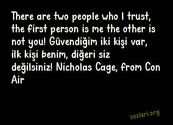 There are two people who l trust, the first person is me the other is not you! Güvendiğim iki kişi var, ilk kişi benim, diğeri siz değilsiniz! Nicholas Cage, from Con Air ( İngilizce Laf Sokucu Sözler )