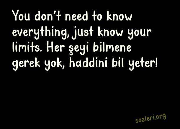You don’t need to know everything, just know your limits. Her şeyi bilmene gerek yok, haddini bil yeter! ( İngilizce Laf Sokucu Sözler )